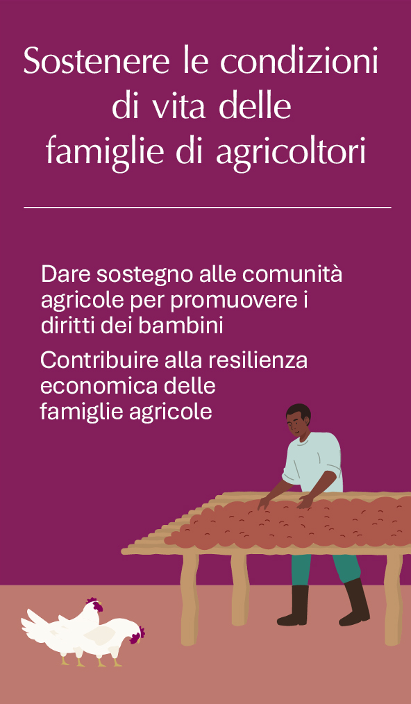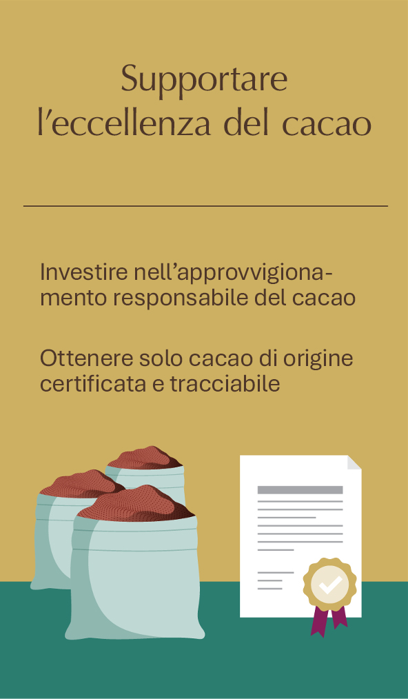 Il Lindt & Sprüngli 2030 Sustainability Plan riflette i nostri valori aziendali fondamentali di Eccellenza, Innovazione, Imprenditorialità, Responsabilità e Collaborazione e definisce come ci prendiamo cura delle persone e dell’ambiente, contribuendo all’eccellenza del cacao, alla riduzione delle emissioni e a posti di lavoro sicuri. Il Plan dà priorità agli impatti sociali e ambientali, ai rischi e alle opportunità che sono più rilevanti per il Gruppo e per il nostro modello di business, la catena del valore e gli stakeholder. Il nostro impegno ad agire in modo etico e a rispettare i diritti umani si estende a tutti gli elementi del nostro Sustainability Plan.